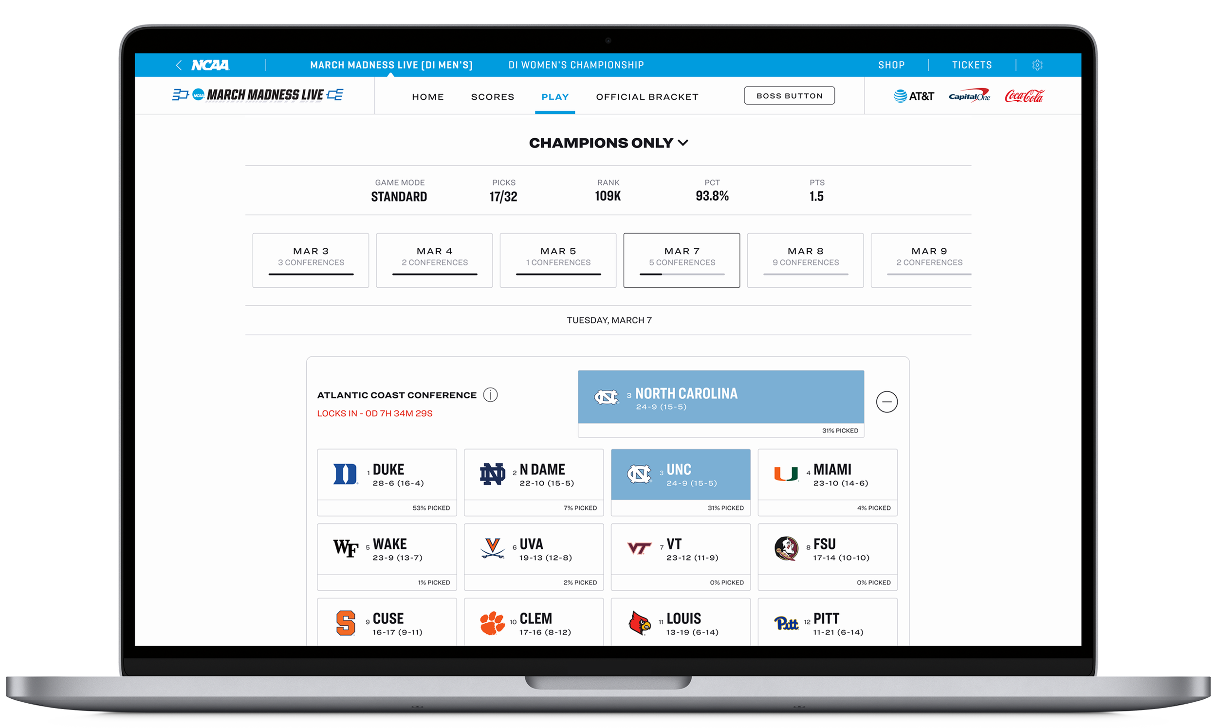 With Conference Tournament Pick’Em, fans get to predict which teams will win each conference.